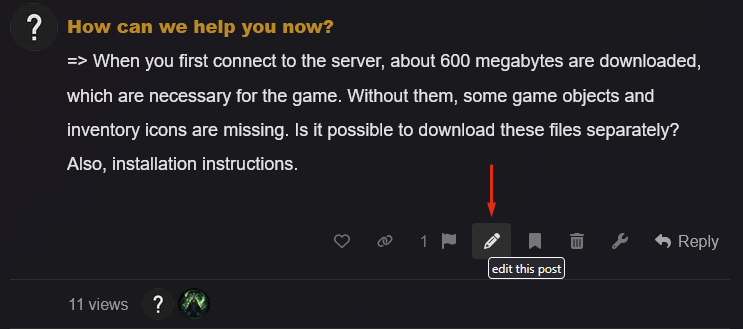 => When you first connect to the server, about 600 megabytes are downloaded, which are necessary for the game. Without them, some game objects and inventory icons are missing. Is it possible to download these files separately? Also, installation instructions.